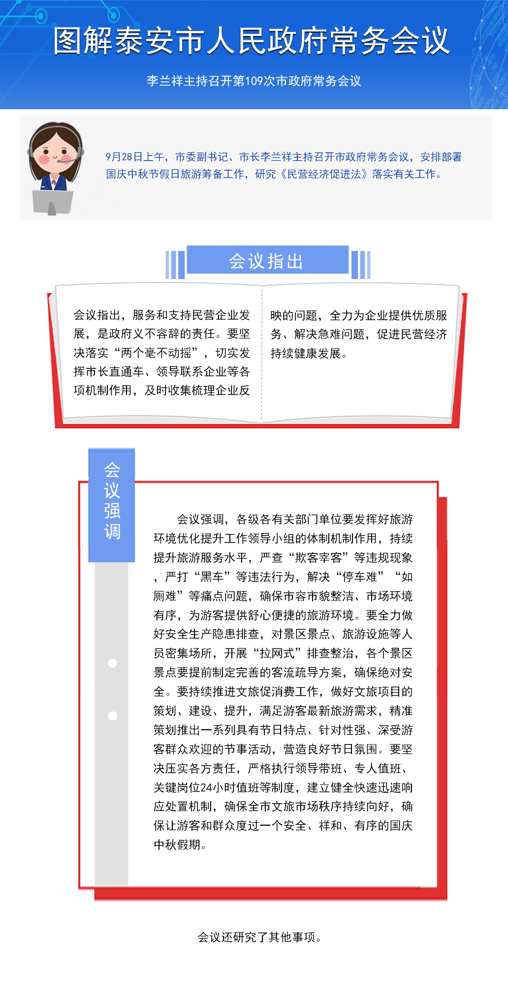 會議議題:安排部署國慶中秋節(jié)假日旅游籌備工作,研究《民營經(jīng)濟(jì)促進(jìn)法》落實(shí)有關(guān)工作。